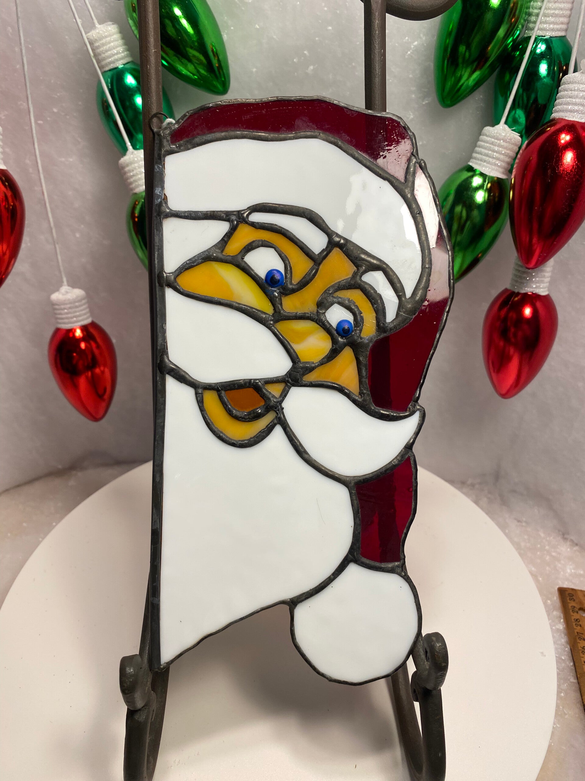 Ever wonder if Santa is peeking? This cheerful Santa features rich, luminous glass and a mischievous peeking pose. A unique and whimsical addition to your holiday decorations bringing holiday cheer with a playful smile and twinkling eyes.